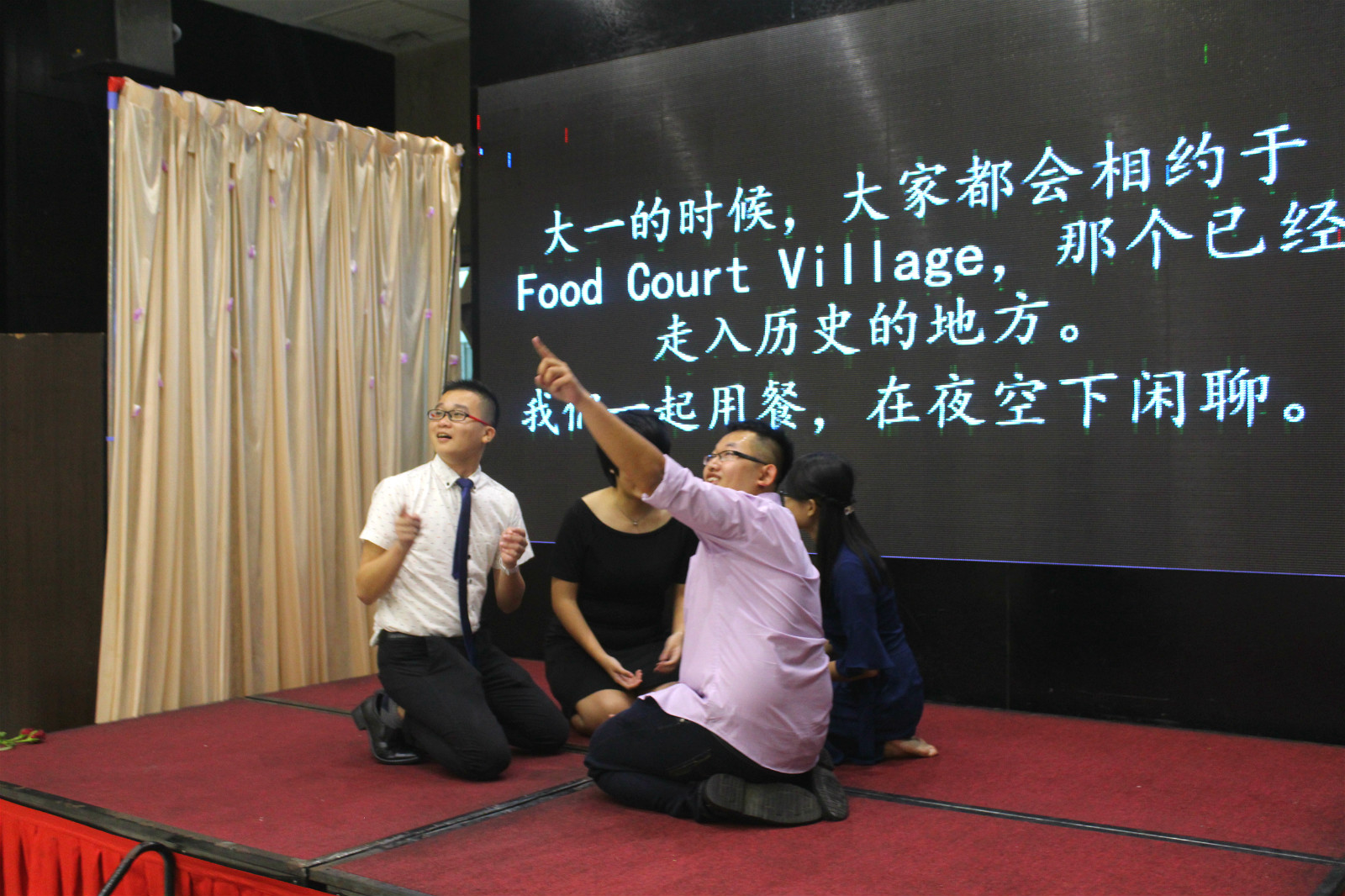 大四生表演短剧。